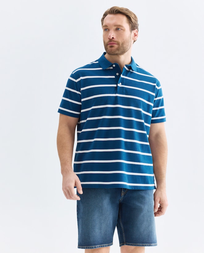 Polo Piqué às Riscas com Manga Curta