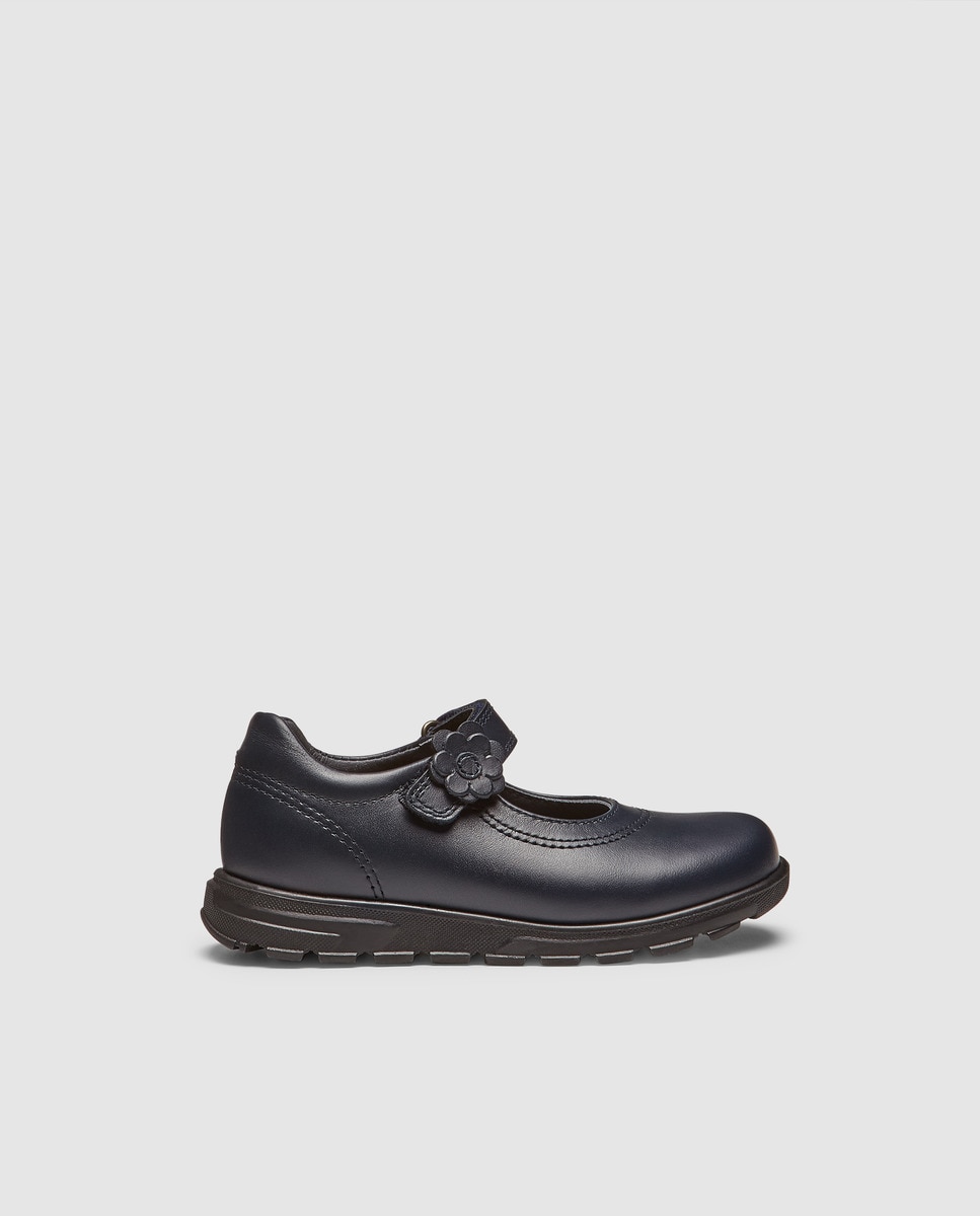 Sapatos de presilha em pele azul-marinho com fecho aderente
