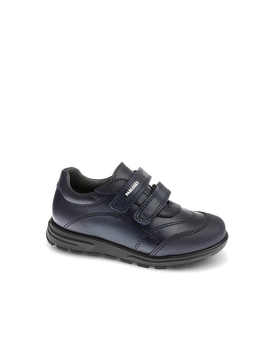 Bluchers em pele azul-marinho com fecho aderente duplo
