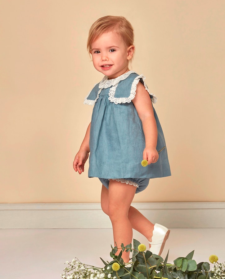 Vestido de Bebé com Tiras Bordadas e em Linho