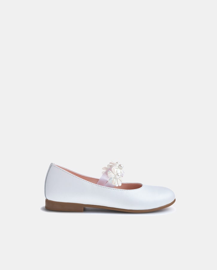 Sapatos de Presilha com Elástico com Flores e em Pele