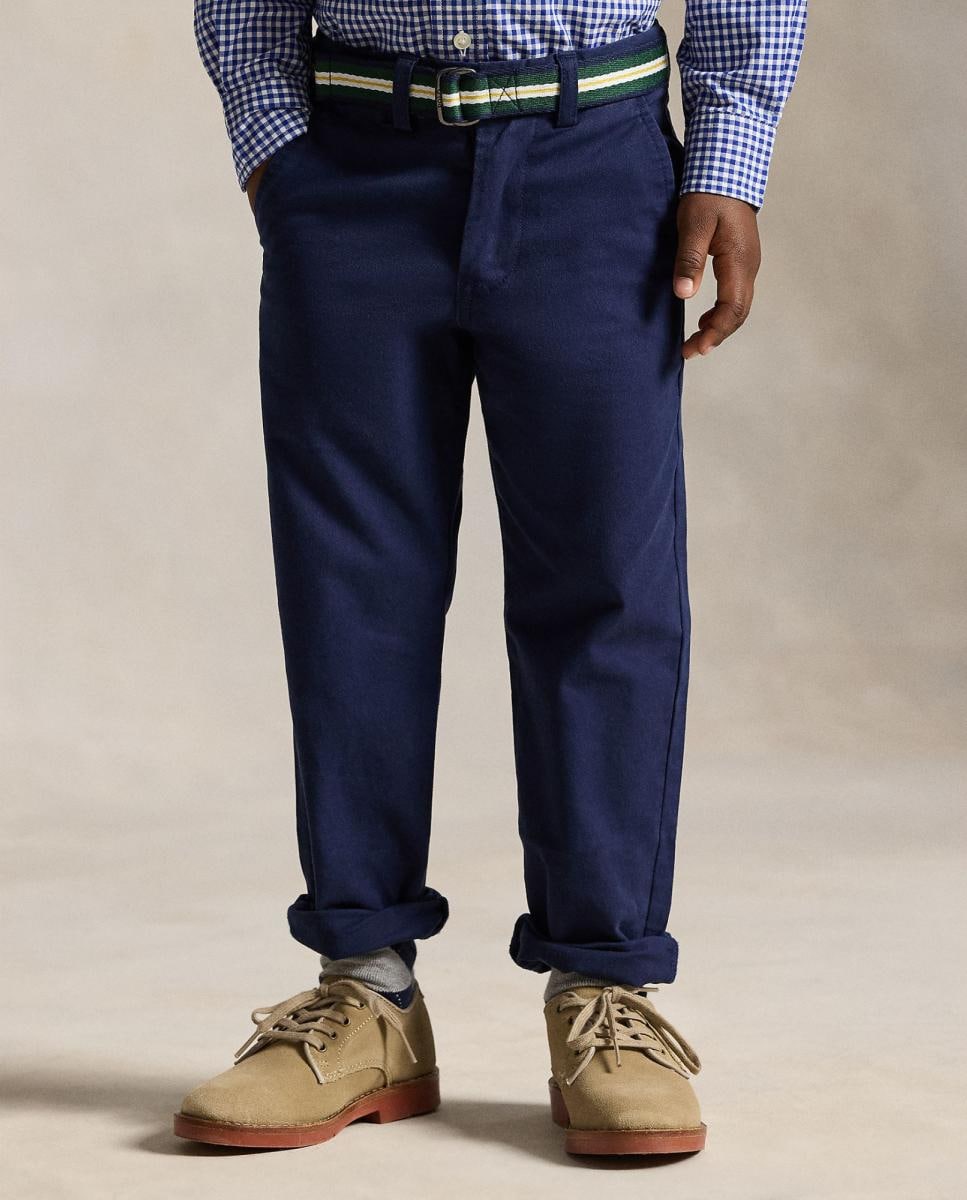 Estas calças elásticas de algodão proporcionam um look impecável graças ao seu corte Slim Fit e ao cinto às riscas.