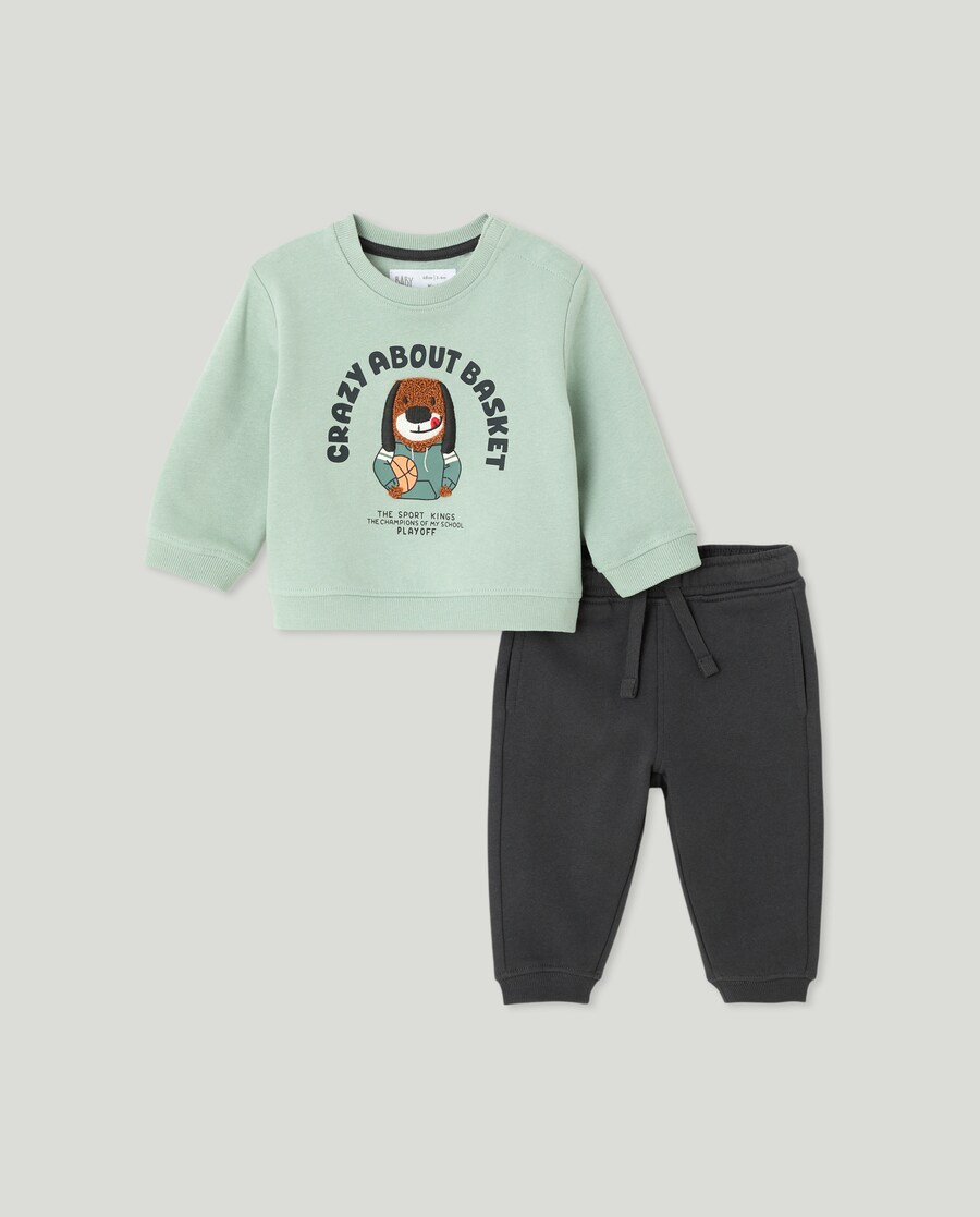 Conjunto de 2 Peças de Bebé: Sweatshirt + Calças com Estampado