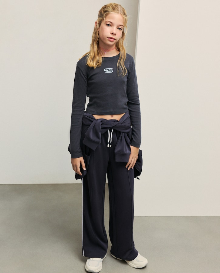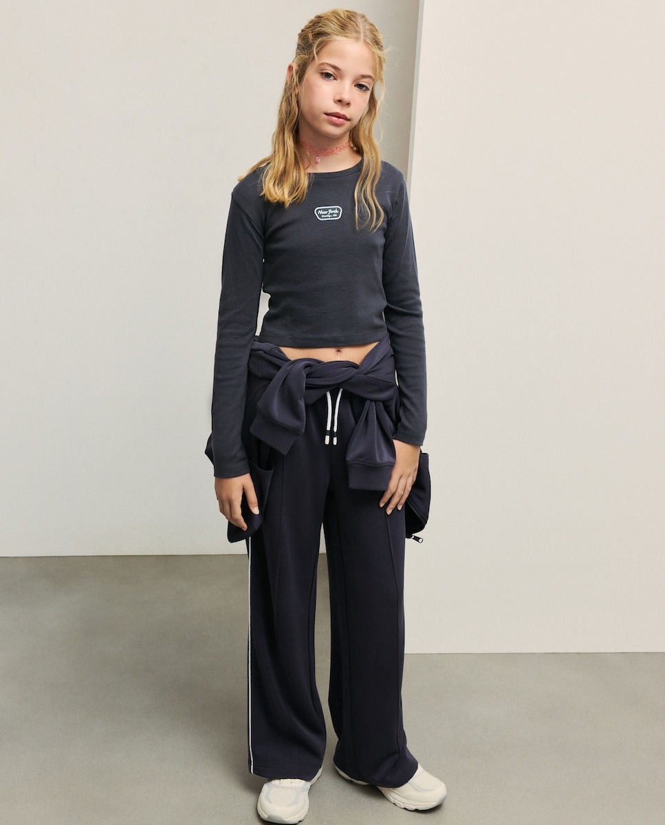 Camisola Cropped com Manga Comprida e Mini Estampado
