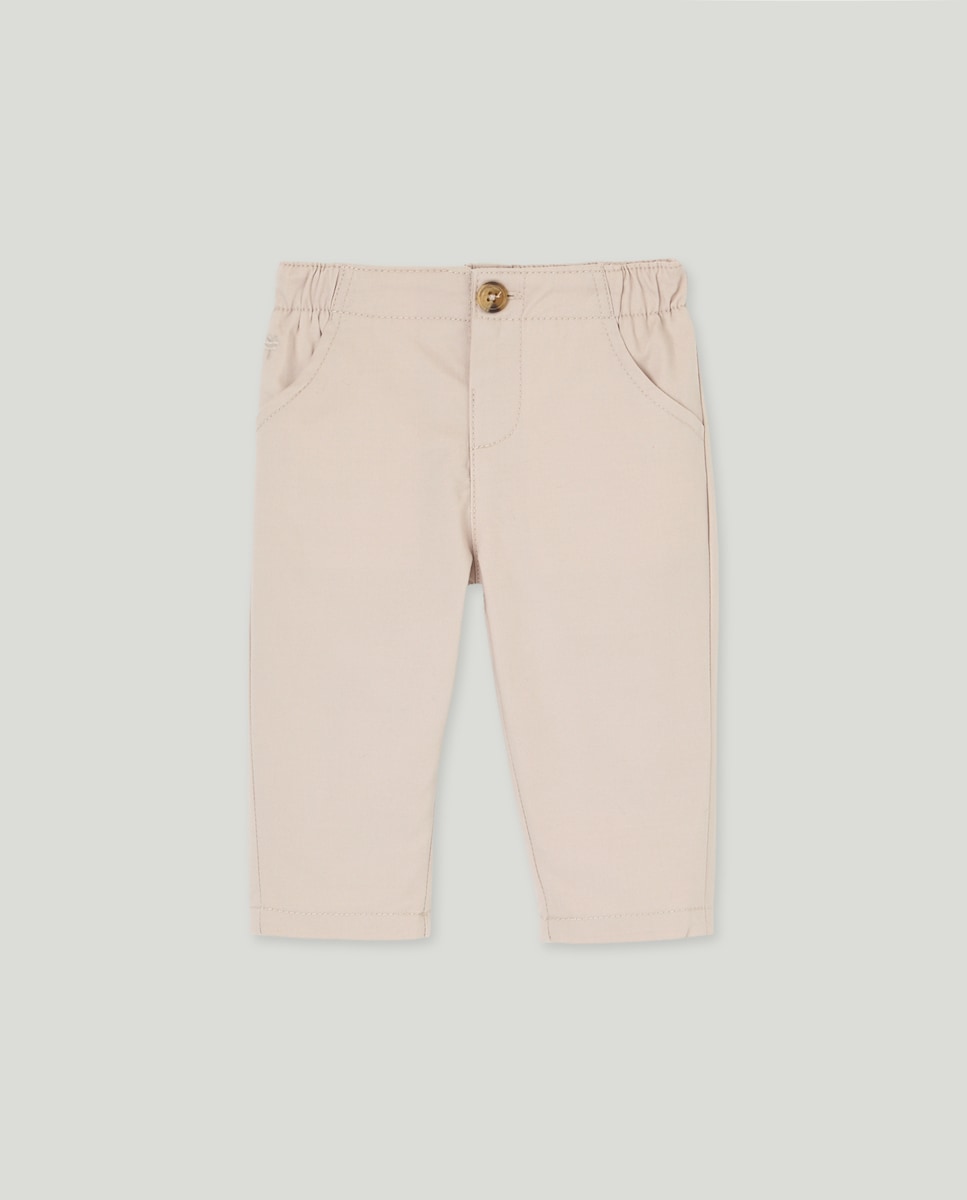 Calças Lisas de Sarja de Bebé com Bolso
