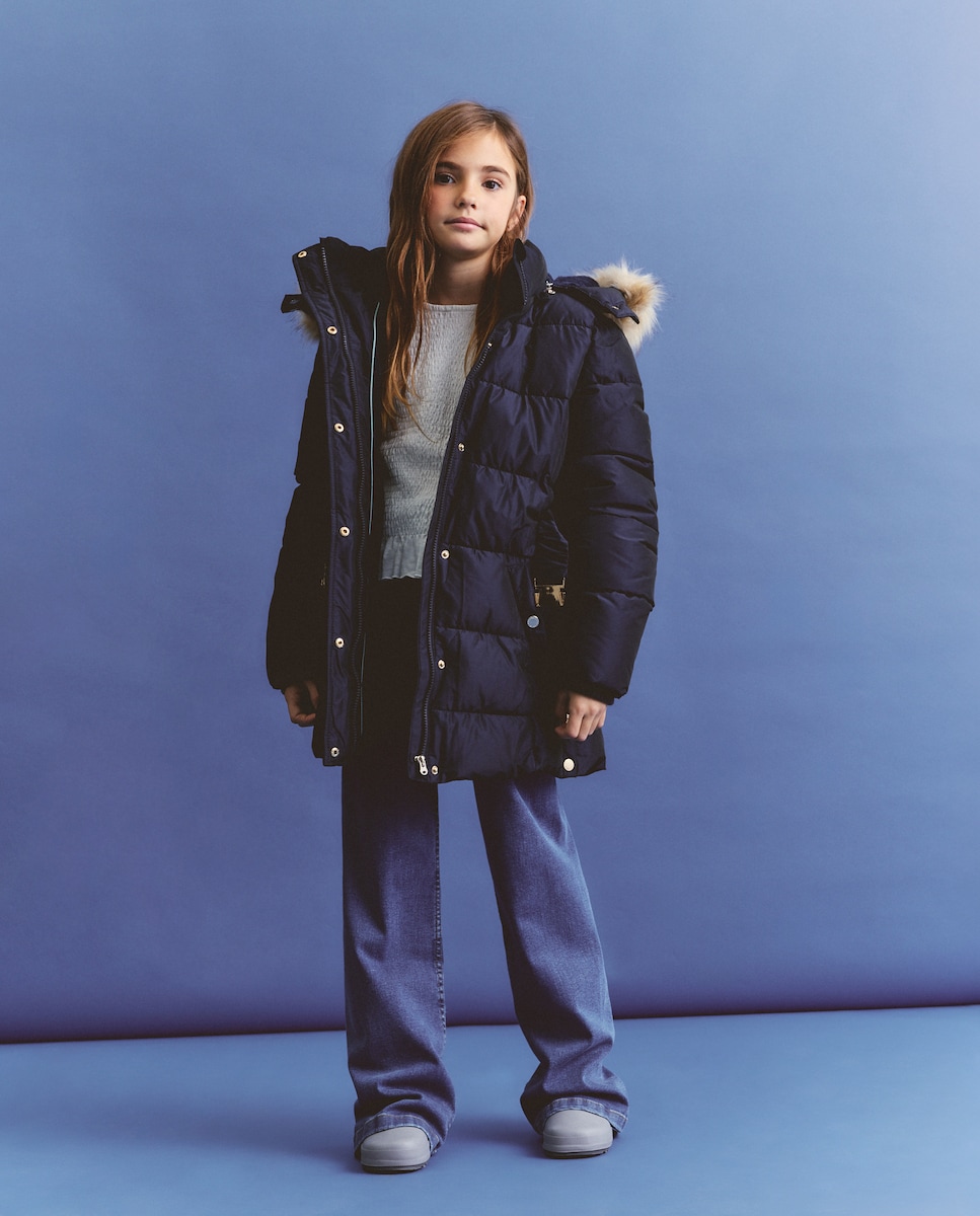Blusão Acolchoado com Capuz Desmontável e Cinto