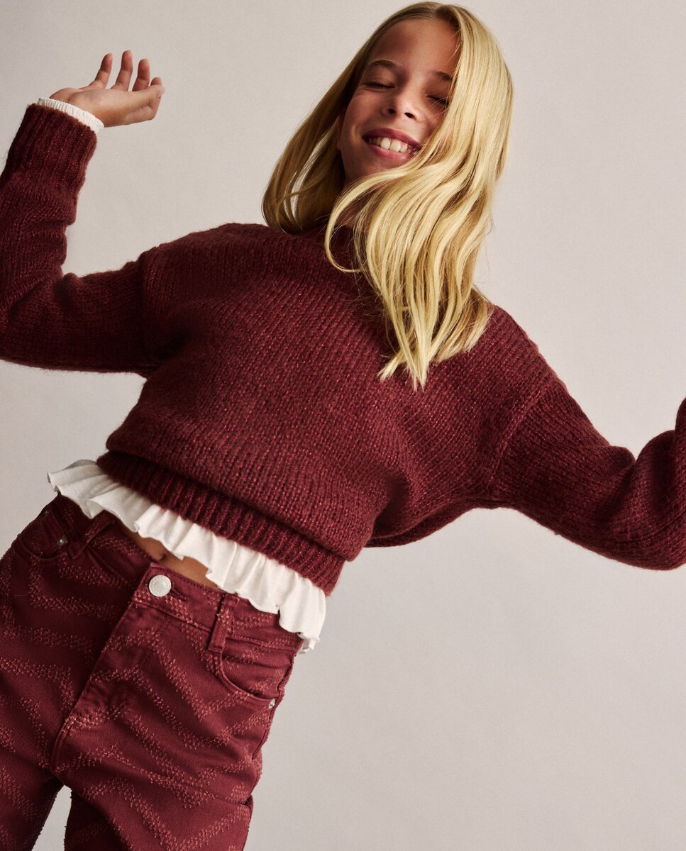 Camisola de Malha com Decote à Barco Oversize e Malha Aberta Esponjosa