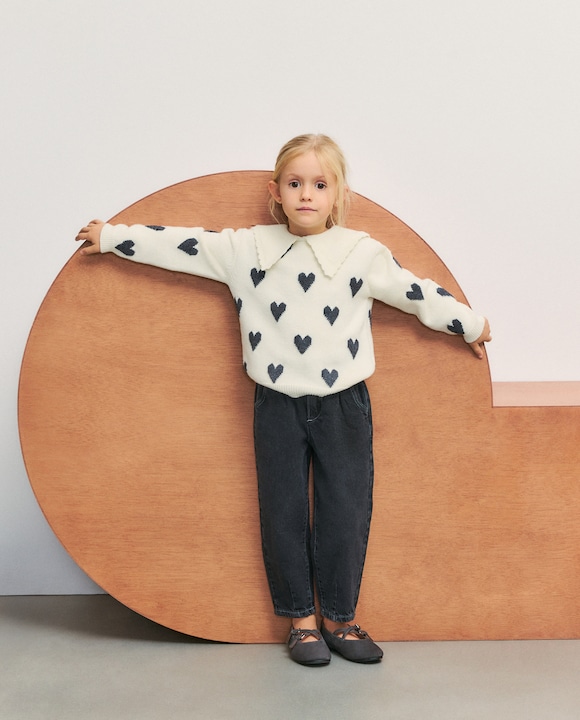Jeans Paperbag Balloon com Estampado de Coração no Joelho