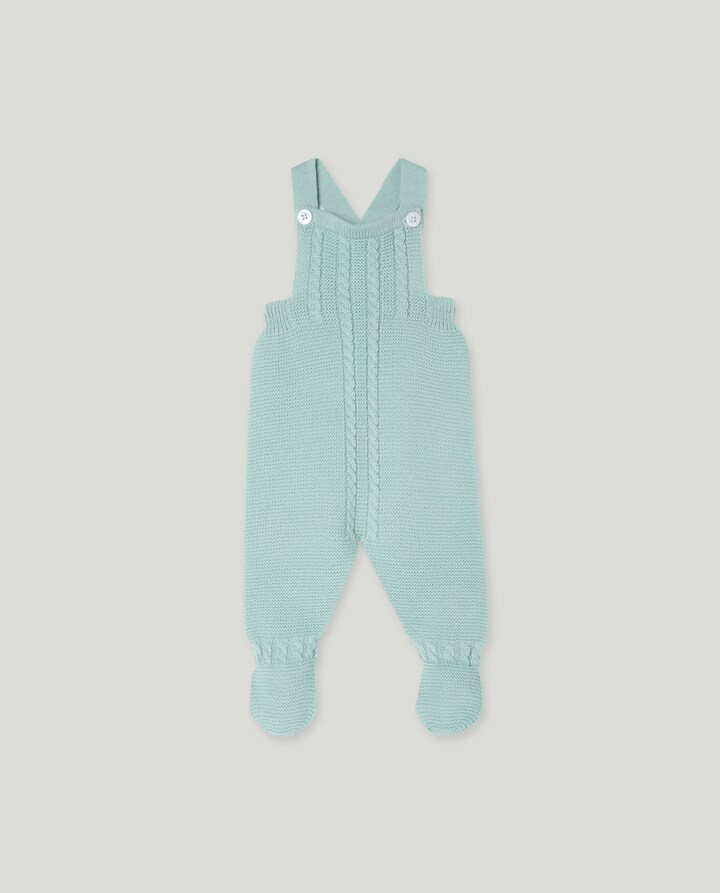 Calças com Pés de Tricot com Alças e Malha do Cabo de Bebé