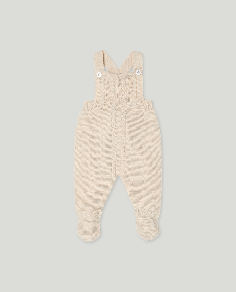 Calças com Pés de Tricot com Alças e Malha do Cabo de Bebé