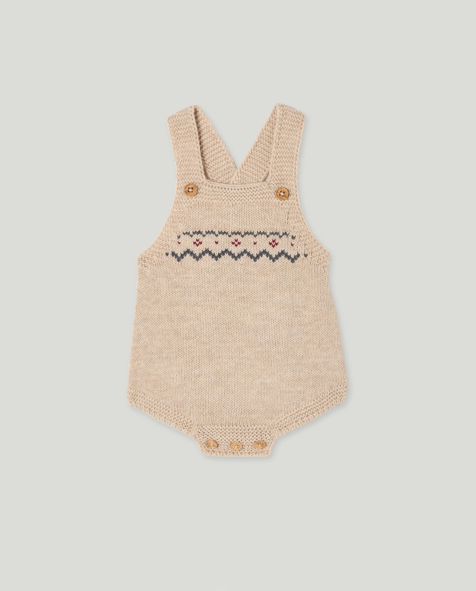 Babygrow de Tricot de Bebé com Alças e Rebordo Decorativo