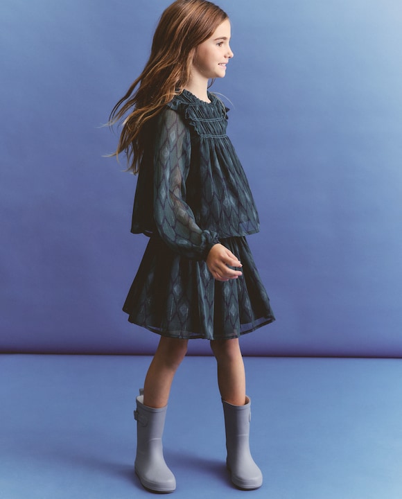 Blusa de Chiffon com Detalhe em Fio Metalizado, Franzidos e Manga Comprida