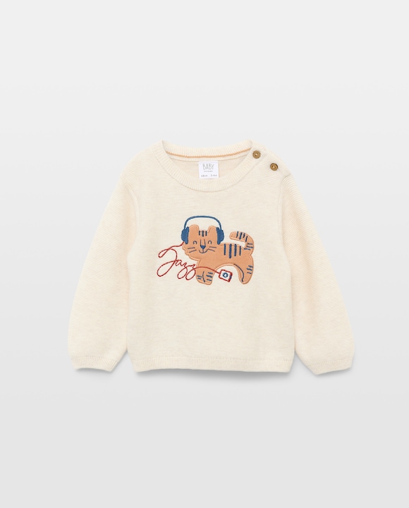 Camisola de Malha de Bebé com Emblema e Malha Entrelaçada
