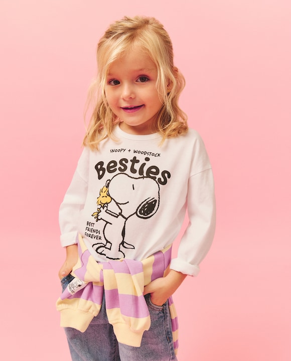 Camisola de Manga Comprida com Estampado Posicional Snoopy e Woodstock "Besties"