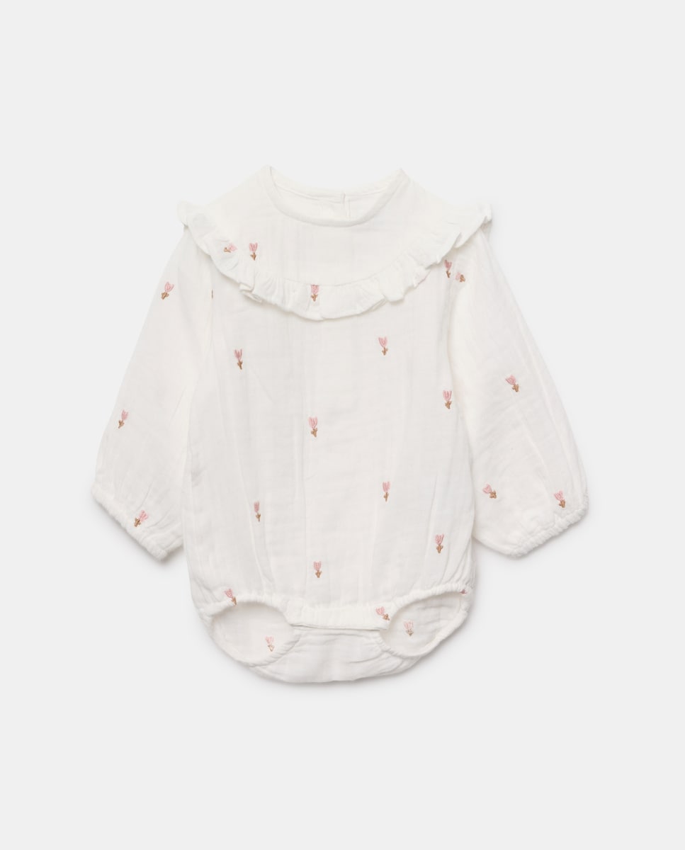 Body de Chiffon de Bebé com Manga Comprida e Bordado