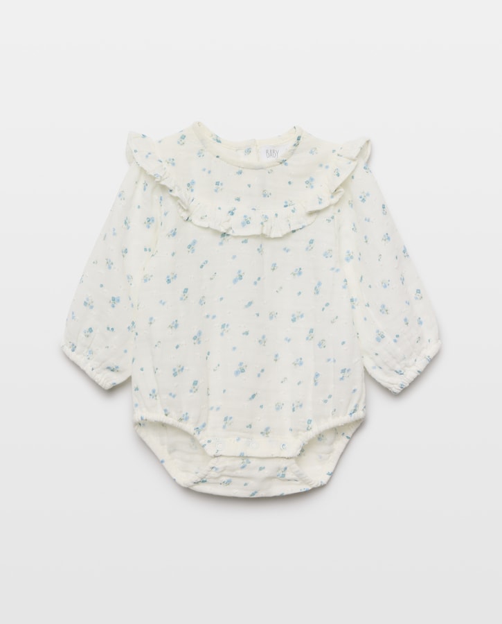 Body de Chiffon de Bebé com Manga Comprida e Estampado de Plumetti