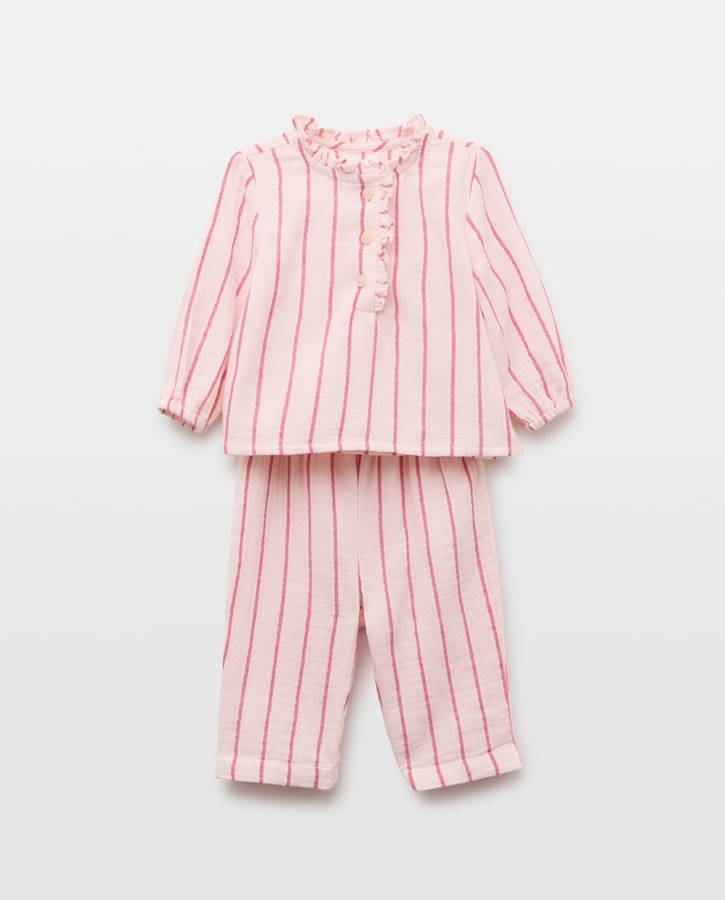 Pijama Completo Comprido de Bebé de Chiffon às Riscas