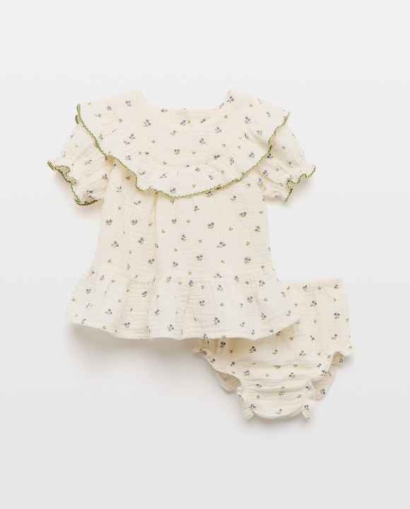 Vestido de Bebé com Manga Curta com Folhos