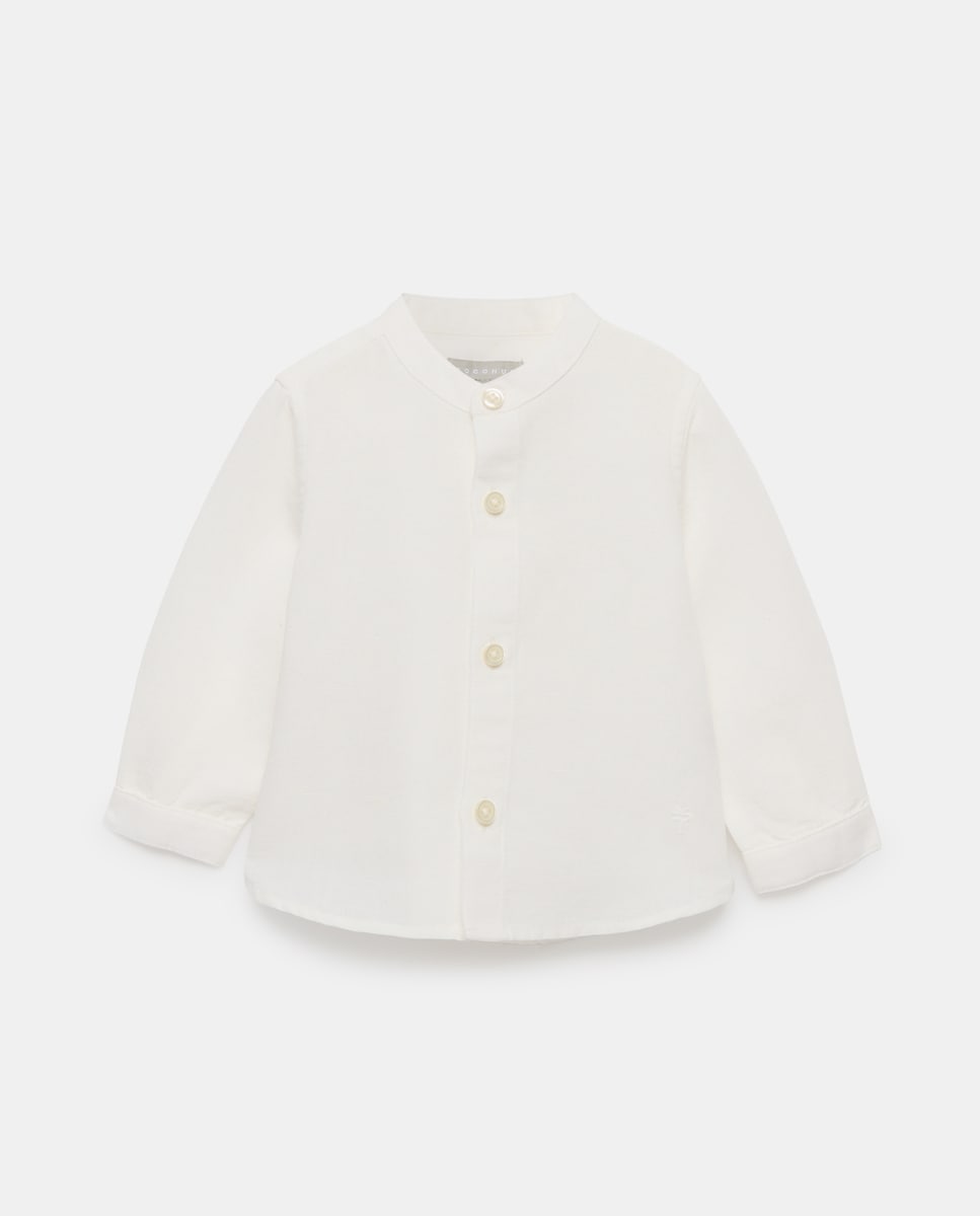 Camisa de Algodão e Linho de Bebé com Manga Comprida e Gola à Padre