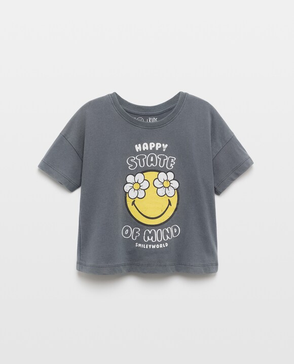 T-shirt de Manga Curta às Riscas e com Malmequeres