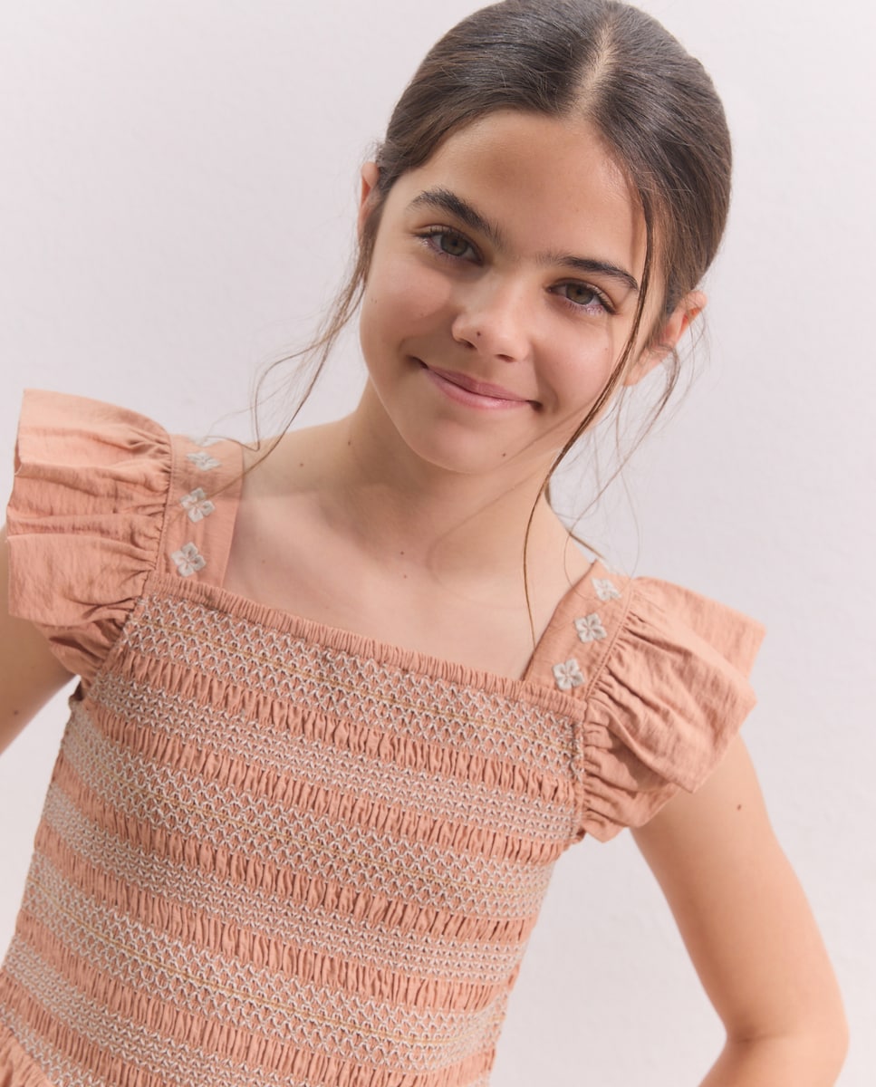 Top de Smock e Bordado com Decote Quadrado