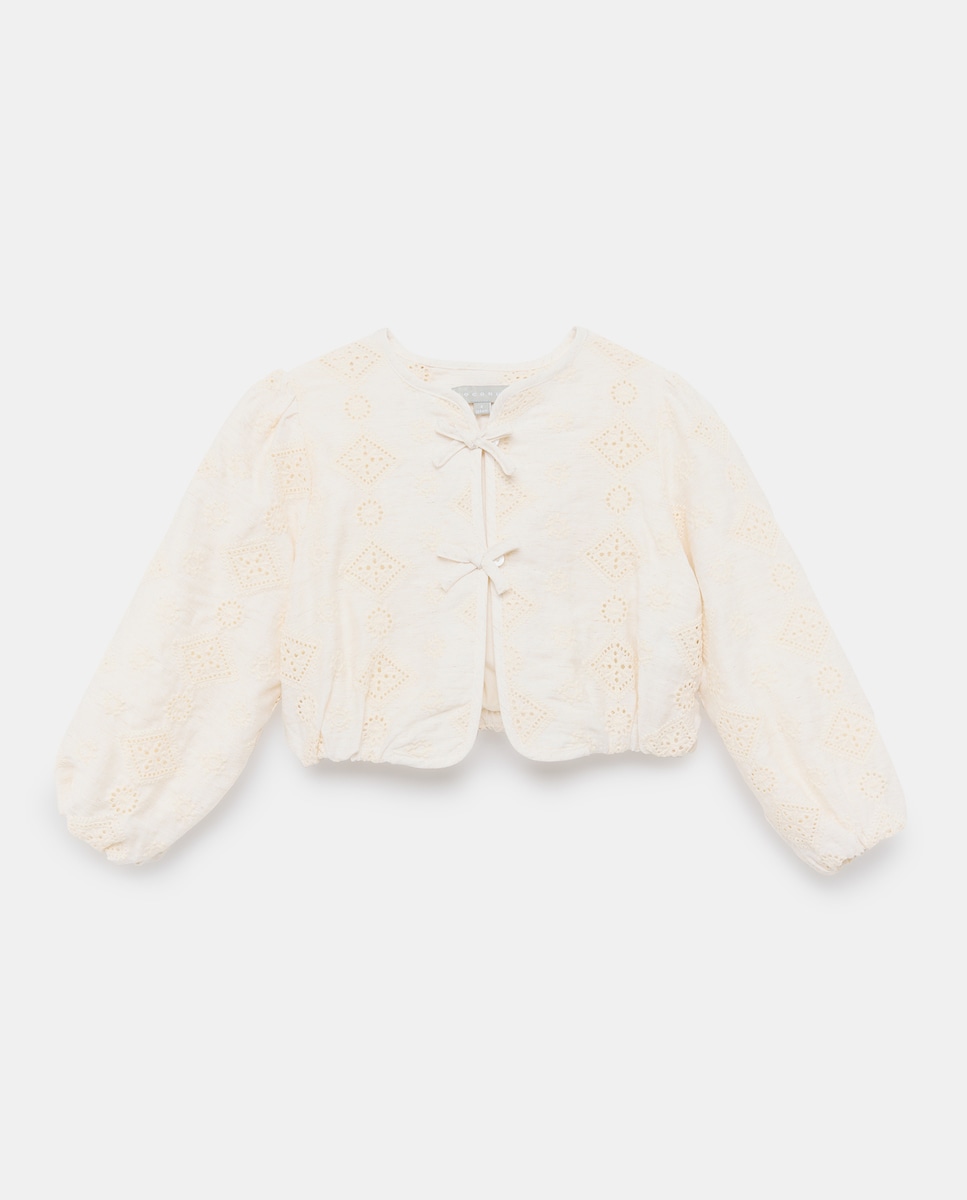 Casaco em Tecido Bordado com Laços