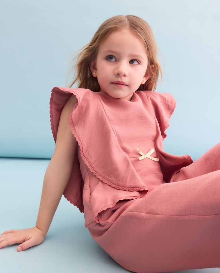 Macacão sem Mangas com Folhos e Laço na Cintura