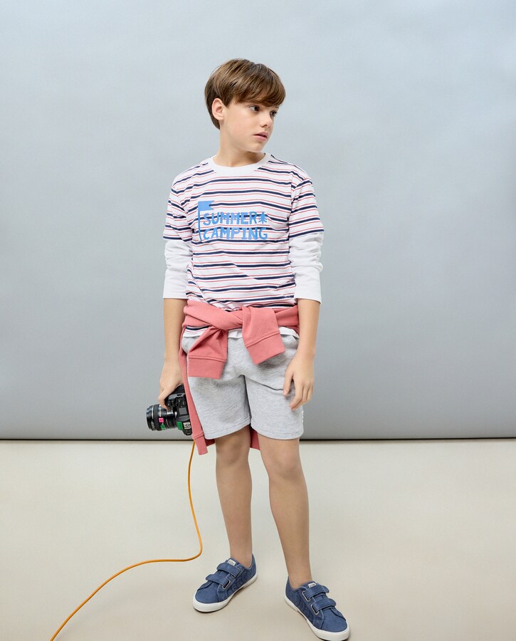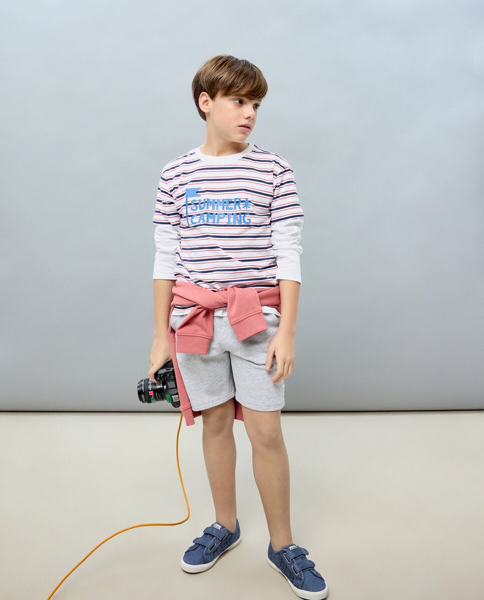 Conjunto de Duas Peças: Calções e T-shirt às Riscas