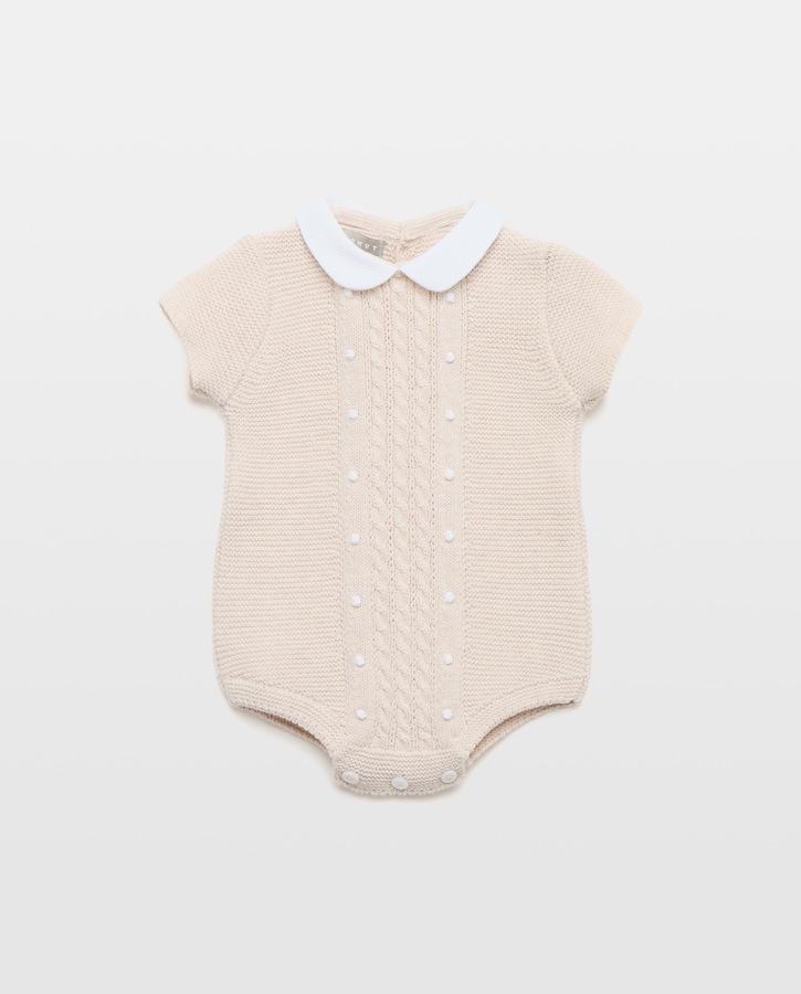 Babygrow com Gola de Bebé e Manga Curta de Tricot Fantasia com Malha de Cabo Central