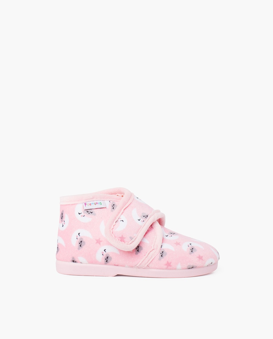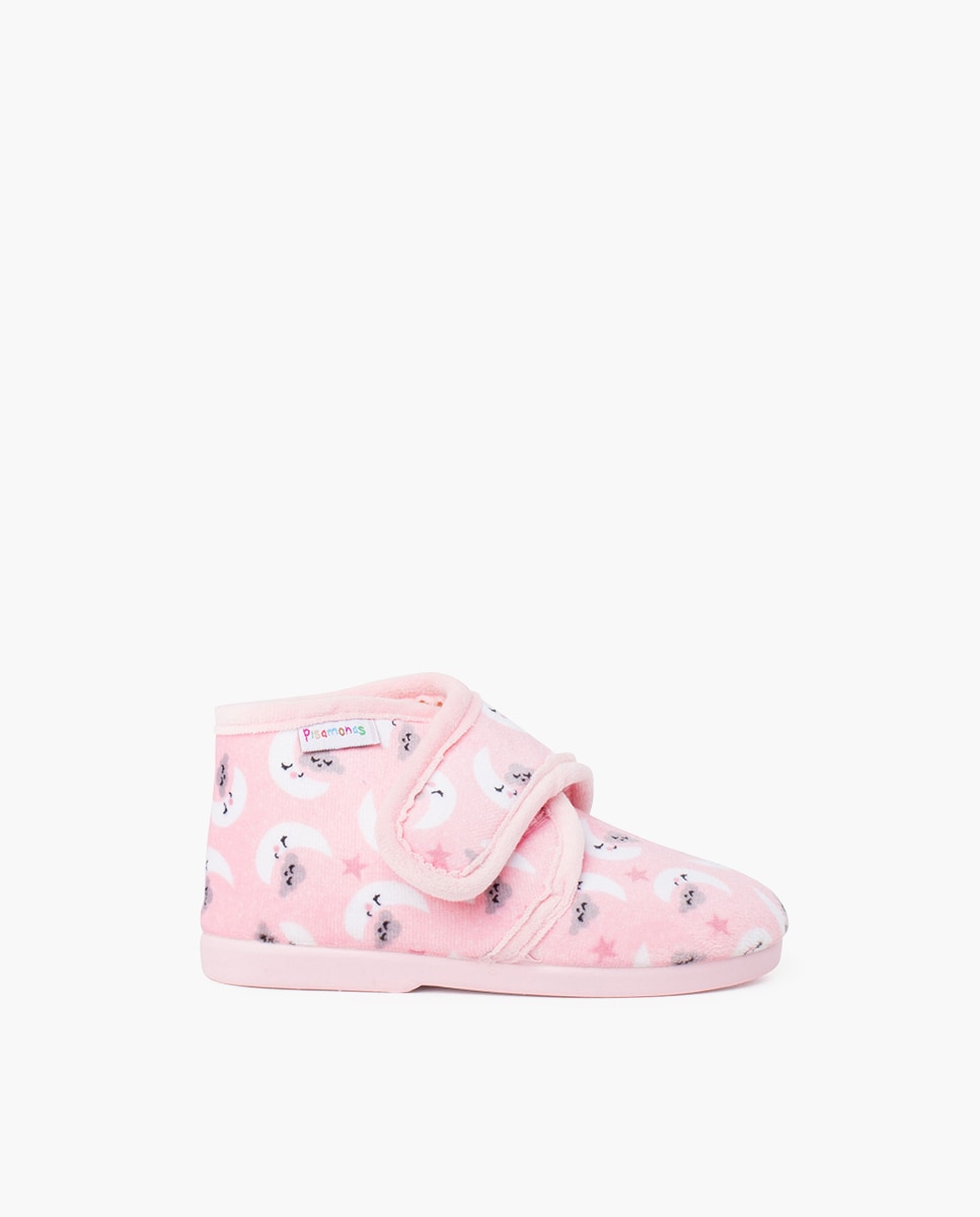 Que bom é chegar a casa depois de um longo dia na escola ou na creche, tomar um bom banho quentinho e vestir o pijama! E para terminar de estar como uns reis, nada melhor que este modelo de botinhas de casa com fecho aderente e design estampado. Umas pantufas de andar por casa quentinhas e muito agradáveis, com um suave forro interior para usar com ou sem meias mantendo o pé a uma temperatura perfeita, e um prático fecho aderente que fomenta a autonomia dos mais pequenos para que aprendam com facilidade a calçá-las sozinhos. Mas isso não é tudo, já que estas botinhas suaves para crianças pequenas têm uns desenhos estampados tão fixes!