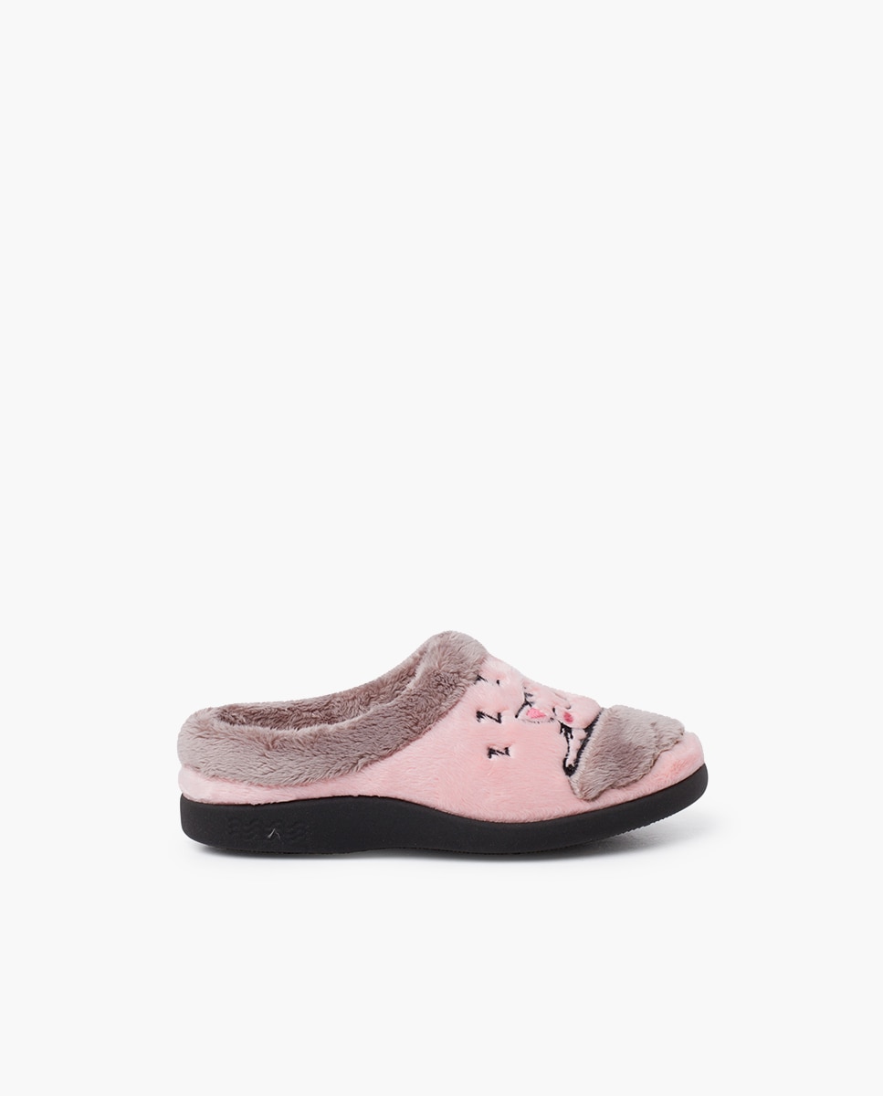Descobre este novo modelo de pantufas tipo socas para meninas. Com um doce desenho de um gatinho dorminhoco na parte frontal, e num bonito design bicolor rosa e cinza, estas pantufas serão as preferidas da tua pequena nos meses mais frios. A sola de borracha antiderrapante proporciona segurança enquanto brincam e se divertem em qualquer canto de casa, enquanto que o suave material de pelinho tipo peluche no exterior e na parte que entra em contacto com a planta do pé proporciona uma sensação quente e agradável, ao mesmo tempo que protege os pés do frio. Mas, para além disso, por serem abertas na parte de trás são super fáceis de calçar e descalçar. Não esperes mais e adiciona estas adoráveis pantufas tipo socas em rosa e cinza ao teu carrinho e faz com que cada dia em casa seja especial e acolhedor com estes gatinhos nos pés da tua pequena. Estão disponíveis desde o tamanho 28 ao 38, caso queiras também umas para ti.