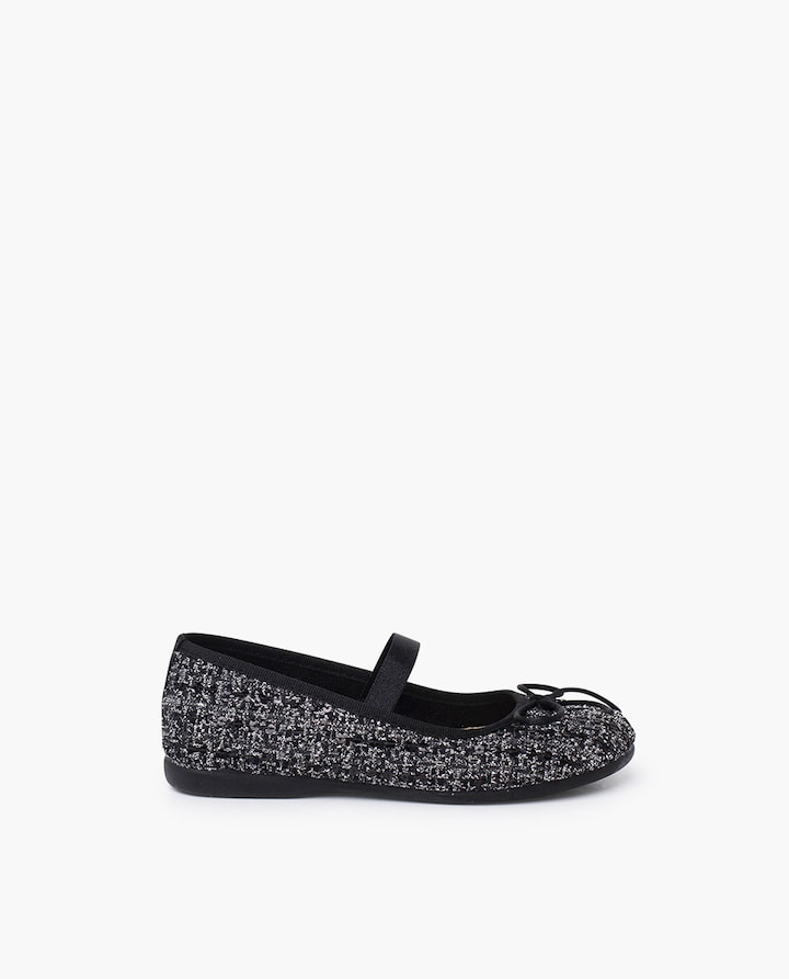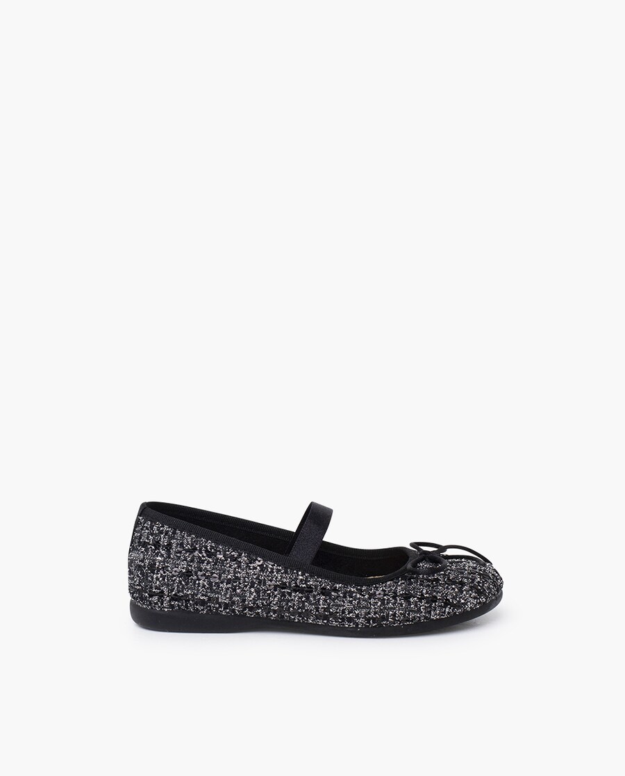 Estas bailarinas de tweed para meninas e mulher são aquele sapato bonito e especial que à sua pequenina vai adorar calçar uma e outra vez. Com uma forma estilizada pensada para pés mais finos, são perfeitas para os eventos de outono e inverno e para dar um toque elegante aos looks de fim de semana. O tecido tweed confere um acabamento muito cuidado, com a sua característica textura que se nota ao toque. Entre os seus fios, um ligeiro brilho metalizado aporta luz e um toque festivo sem resultar exagerado. O laço frontal completa o design com um detalhe clássico e simples. A fita elástica central pode ser colocada por fora, cruzando o peito do pé, para usar o sapato como uma mercedita e assegurar que não.