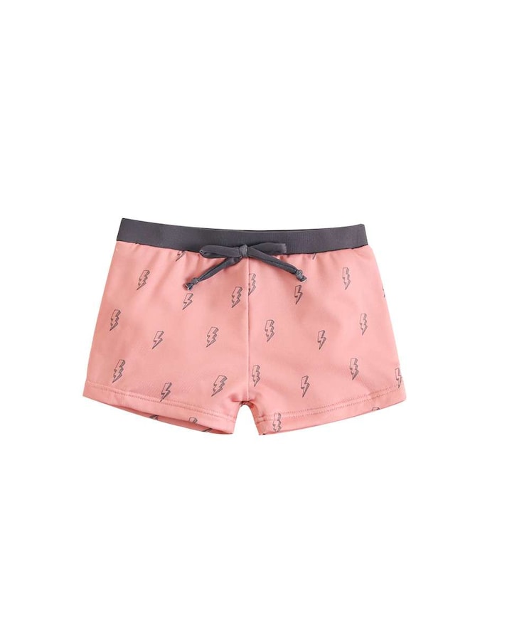 Boxers de lycra para bebé menino em coral com estampado de raios cinzentos. Cordão ajustável na cintura.