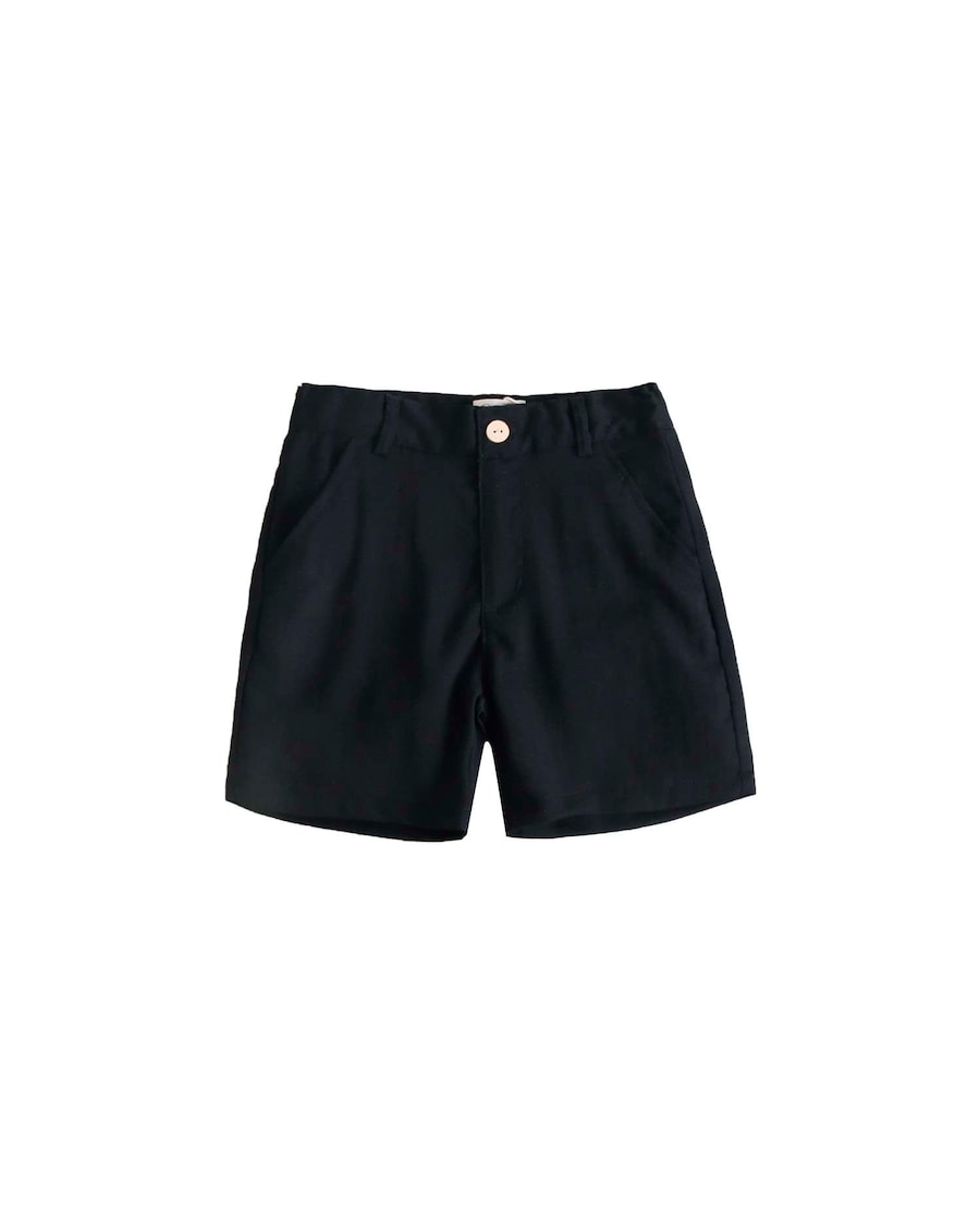 Bermudas de menino em preto com cintura ajustável e bolsos laterais.