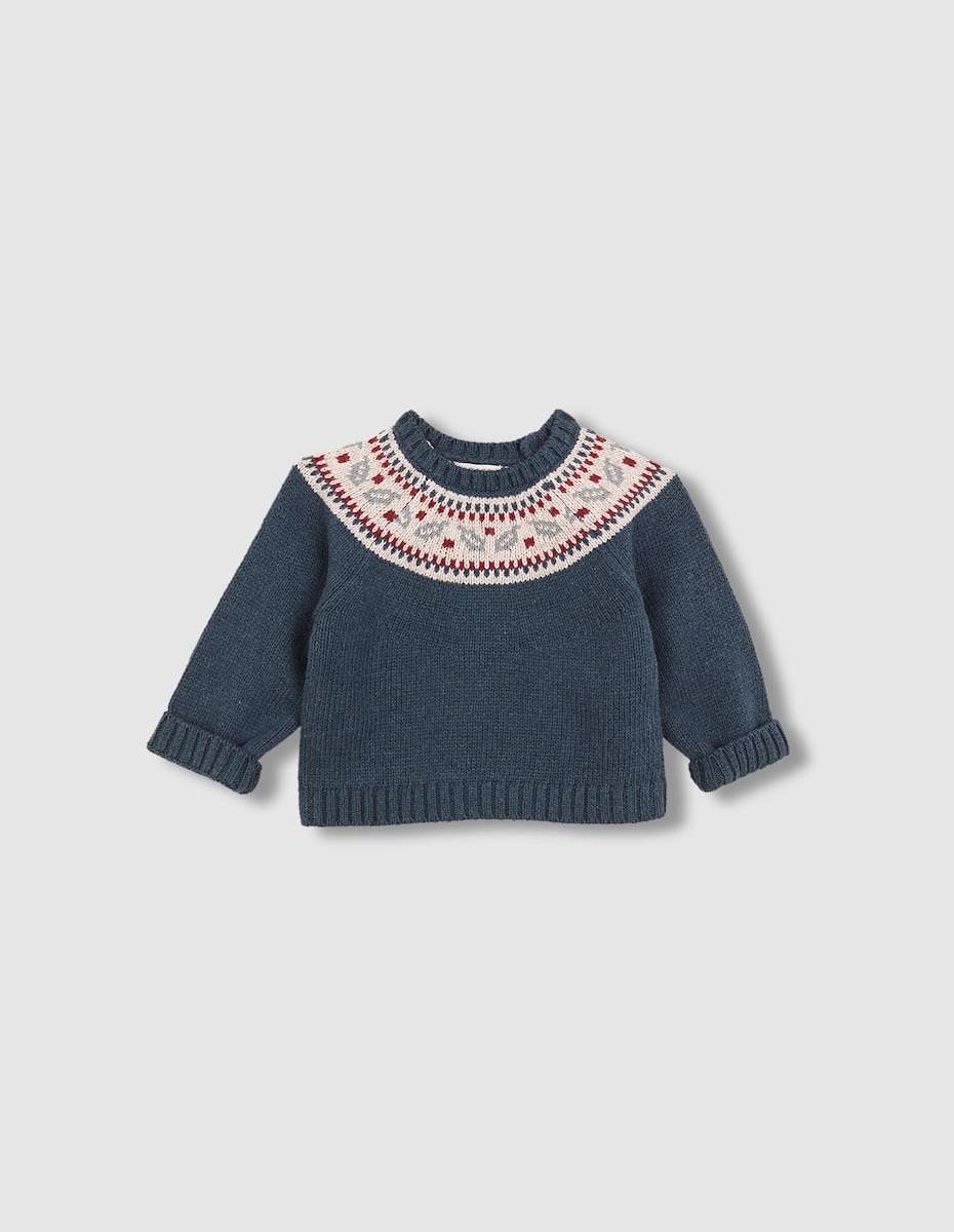 Camisola com gola redonda e detalhe de grelha de inspiração natalícia na gola.