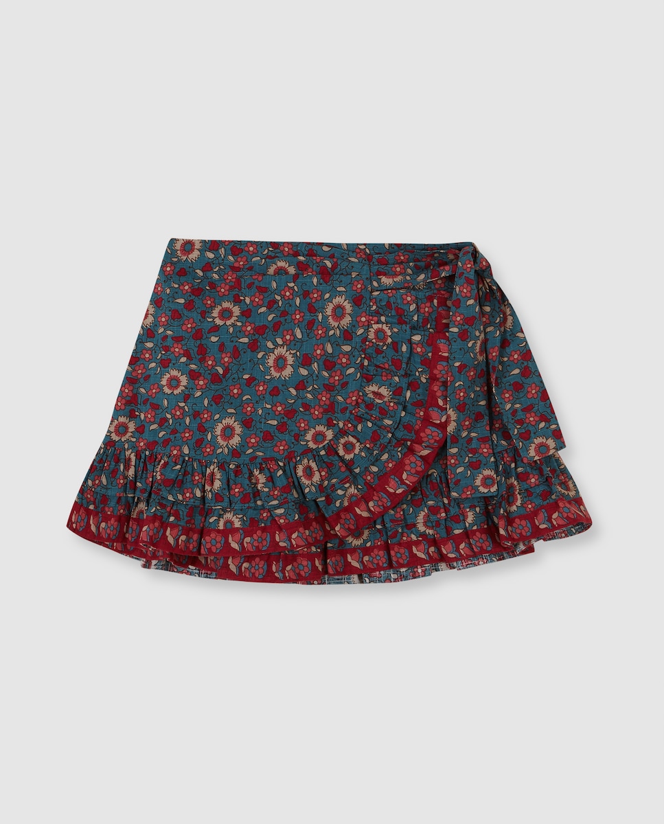 Saia com estampado de estilo páreo com um maxi volante na bainha e uma tira em contraste.