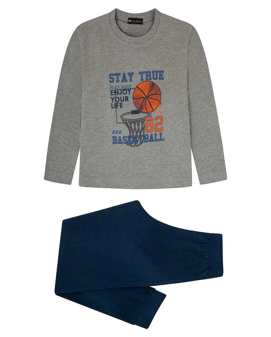 Pijama Comprido de Algodão Cinzento-Claro