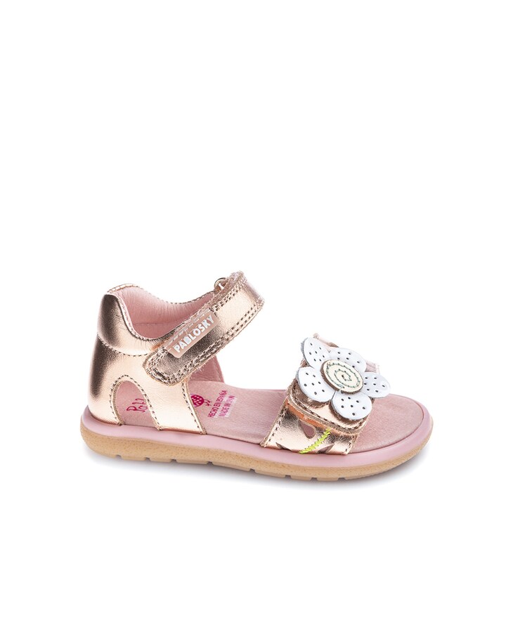 Sandálias de bebé menina Pablosky de pele com fecho aderente.