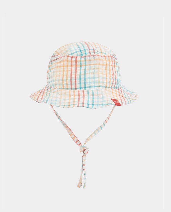 Boné de popeline para recém-nascidos que apresenta um design aos quadrados. Está confecionado em um material leve e respirável, ideal para proteger o seu bebé do sol. Equipado com uma correia ajustável, assegura um ajuste confortável e seguro. Adequado para bebés de 0 a 12 meses, está disponível em tamanhos desde XXS42 até M/50. O seu estilo clássico torna-o uma opção versátil para combinar com diversas peças, acrescentando um toque alegre a qualquer conjunto.