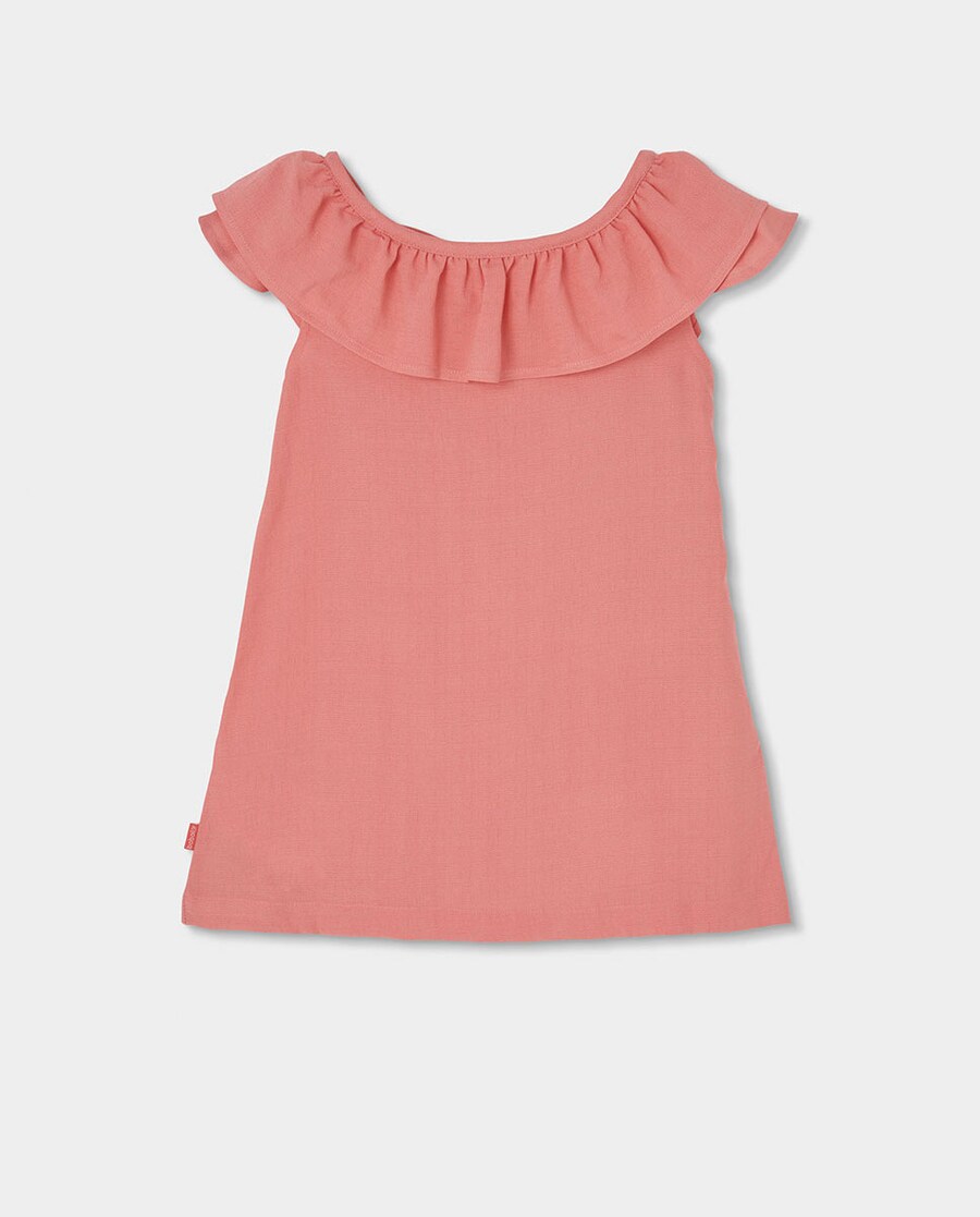 Encantador vestido de tecido fantasia em rosa ideal para meninas, oferecendo um look fresco e leve. O seu design apresenta uma gola com folho, aportando um toque elegante e feminino. Fabricado em linho, é perfeito para os meses quentes, permitindo transpiração e conforto. Disponível em tamanhos desde 12 meses até 10 anos, está desenhado para se adaptar a diferentes etapas de crescimento. A sua cor rosa suave torna-o versátil, ideal para combinar com acessórios simples, perfeito para ocasiões especiais ou para o dia a dia.