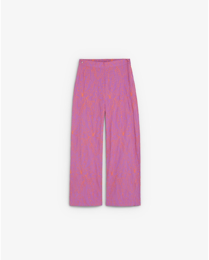 Calças Fluídas com Bordado Floral