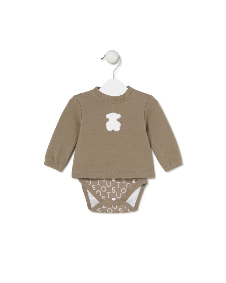 Body de bebé Tous Baby com camisola de corte evasé, manga comprida. Confecionado em suave algodão liso com urso bordado sob o decote. Fecho com botões de pressão nas costas e na entreperna.