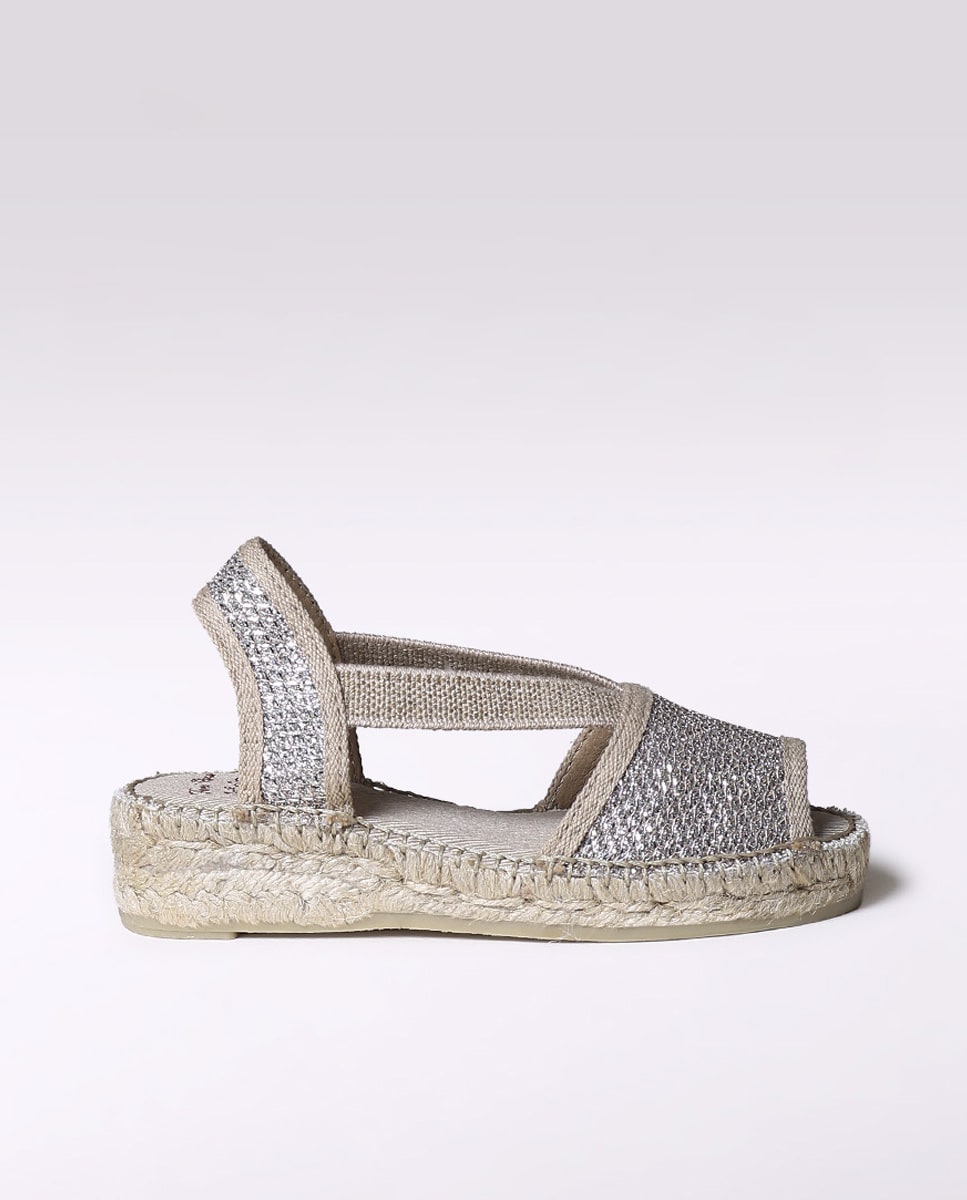 ELI-S de Toni Pons. Alpercatas para menina elaboradas em tecido de tons brilhantes e forro de têxtil respirável. O cunha tem uma altura total de 3,5cm dos quais 1,5cm pertencem ao tacão e 2cm à sola e está feita de juta e borracha. A planta interior está forrada em tecido. ELI-S é a reinvenção da sandália clássica de Toni Pons na sua versão para menina. Os elásticos laterais asseguram uma perfeita sustentação ao pé. É uma alpercata moderna e fresca ideal para o verão.