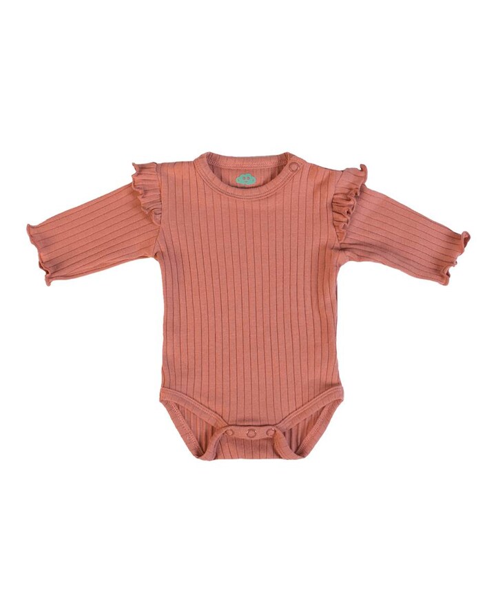 Body de manga comprida em jersey canelado, com abertura no ombro. Fabricado em Portugal.