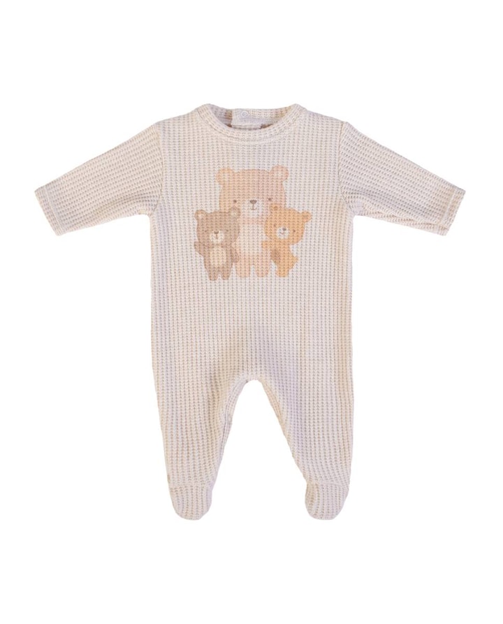 Babygrow em malha tricotada com abertura nas costas. Fabricado em Portugal.