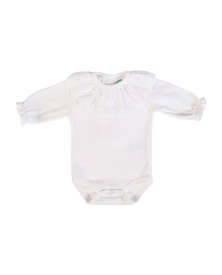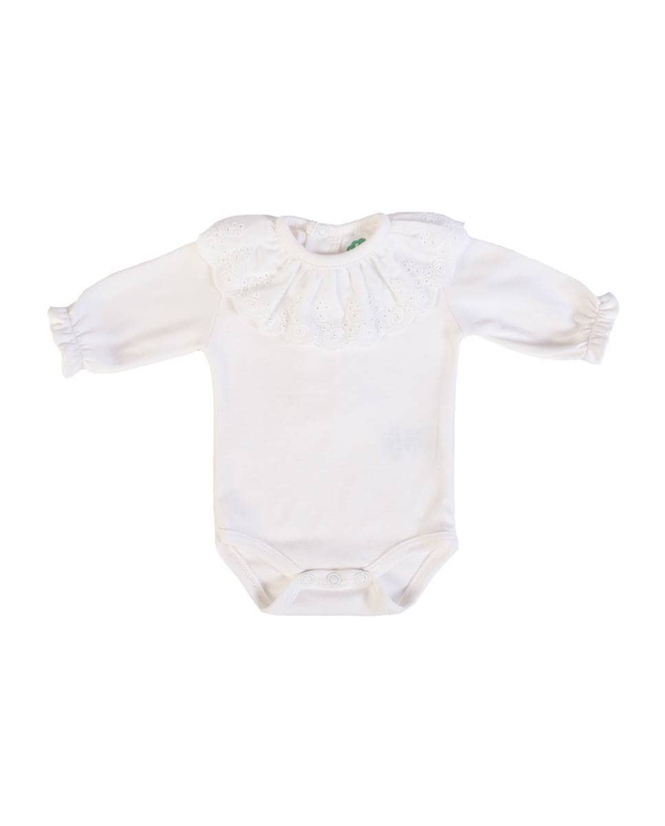 Body de manga comprida em algodão com abertura atrás e gola bordada. Fabricado em Portugal.