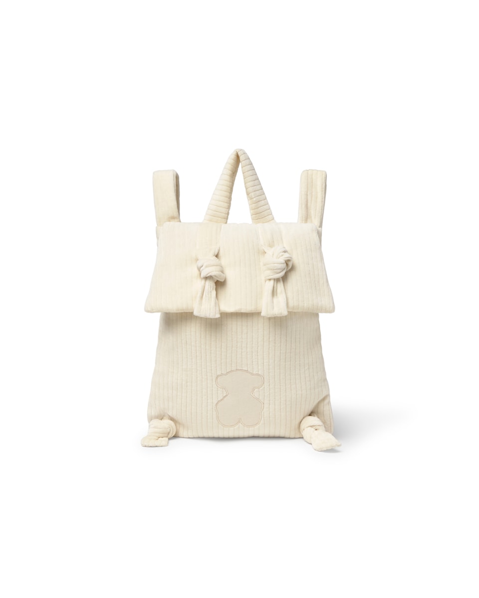 Mochila Pré-escolar Aveludada Canelada com Urso Bordado
