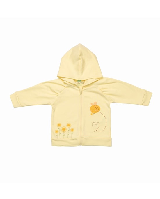 Casaco em felpa com fecho e capuz