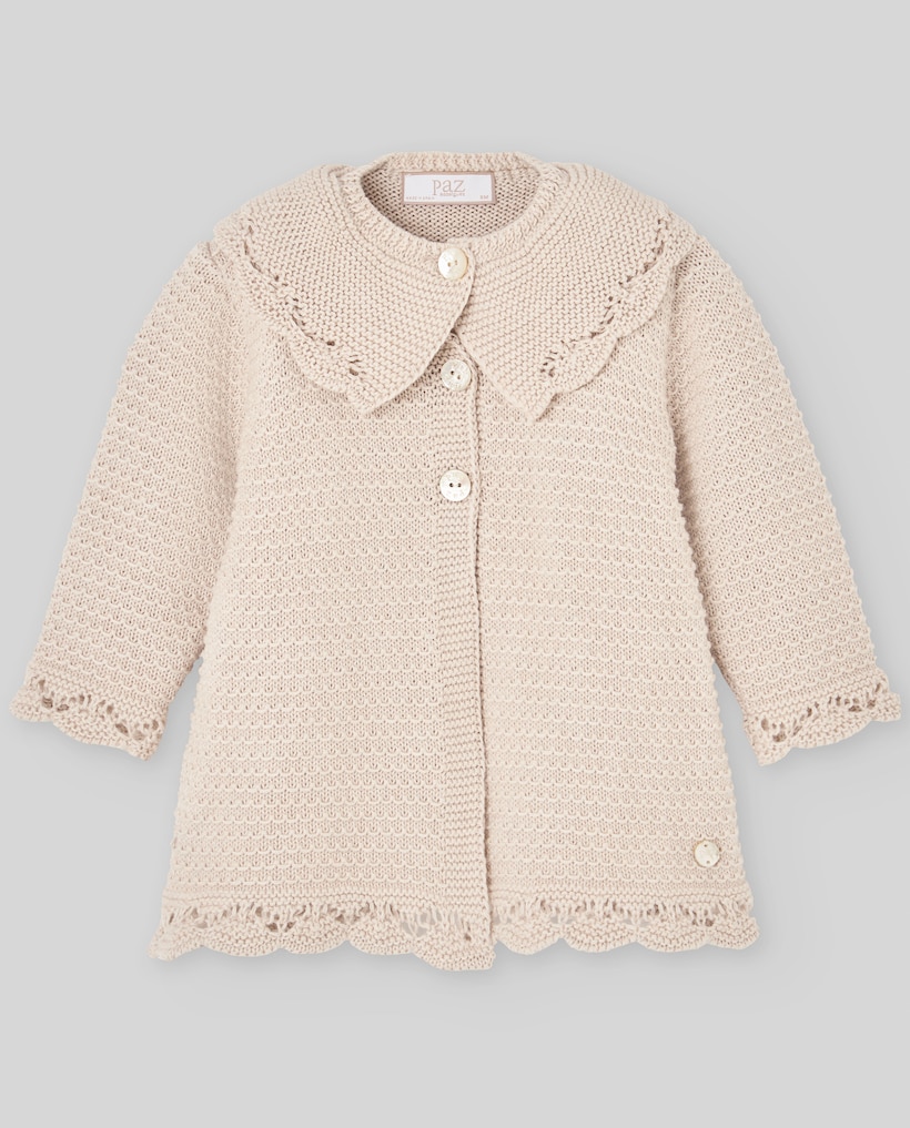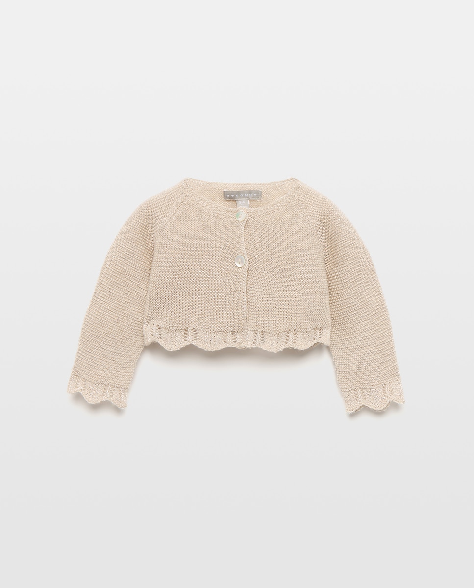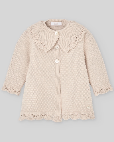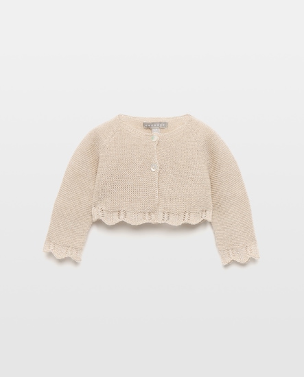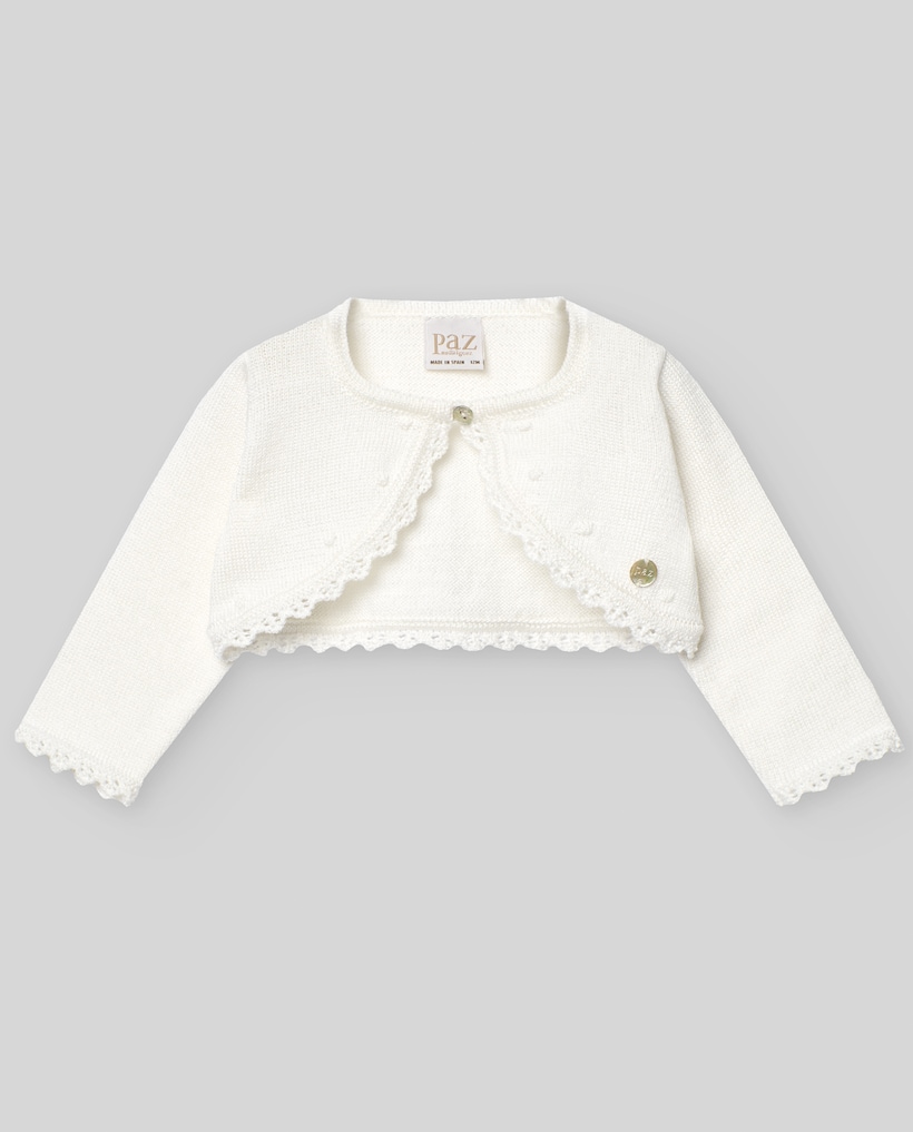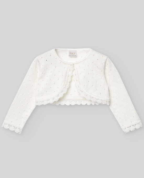 Casaco Curto Perolado com Gola Desfiada de Bebé