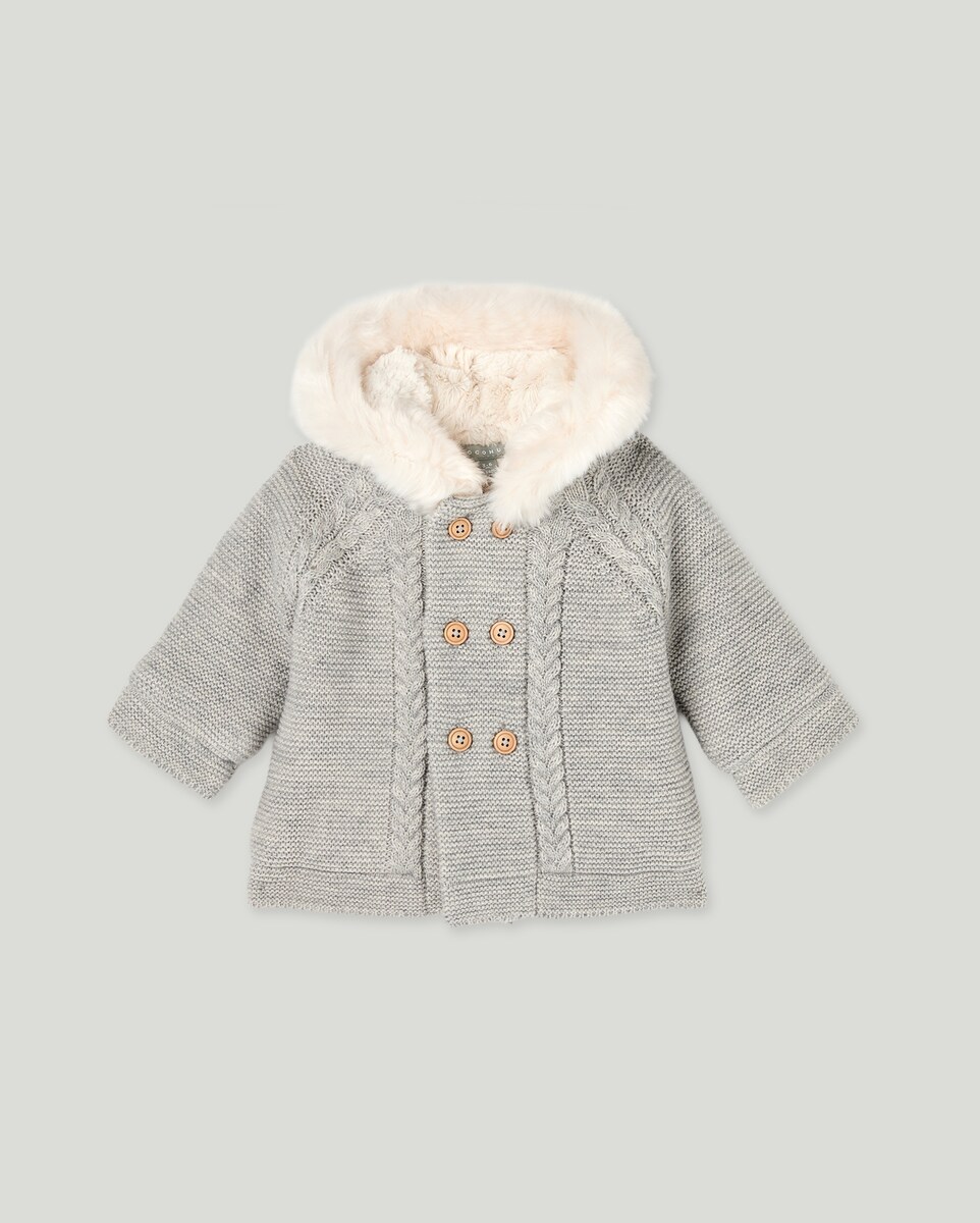 Casacão Liso de Tricot de Bebé com Malha do Cabo à Frente
